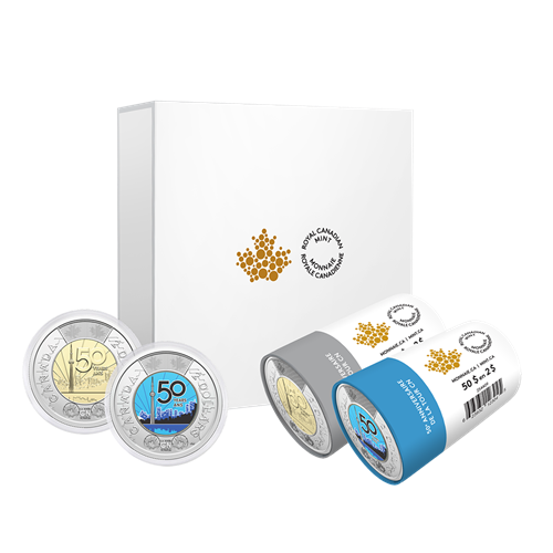 Each Colourized Special Wrap Roll adds 25 colourful commemorative $2 coins to your collection, but with this Special Wrap Roll Set, you get TWO different versions of the 50th Anniversary of the CN Tower coin: one Colourized Special Wrap Roll, and one Special Wrap Roll of 25 non-colourized coins. Inside the presentation box, your two rolls come nestled in a custom foam insert alongside two encapsulated coins (one of each version)—a new addition that makes it easier for you to view the designs and put either side of the coin on display.