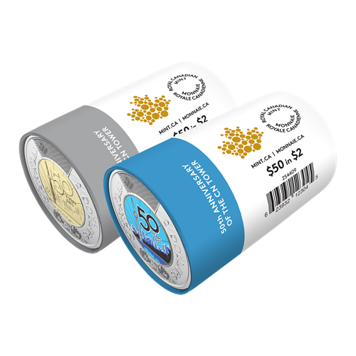 - Two rolls, two different versions. Each Special Wrap Roll contains 25 of Canada’s 50th Anniversary of the CN Tower $2 coin, which comes in two different versions: non-colourized, and with selective colour. This two-roll set gives you one roll of each version!
