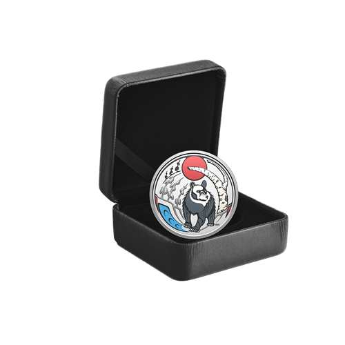 Designed by Anishinaabe artist Mark V. Nadjiwan, the coin’s reverse is set in a forest, where the red midday sun hangs high in the sky. Mukwa (the Bear) follows a blue forest stream, with black spruce rising up on one bank and a birch tree brightening the other. The obverse features the effigy of His Majesty King Charles III by Canadian artist Steven Rosati.