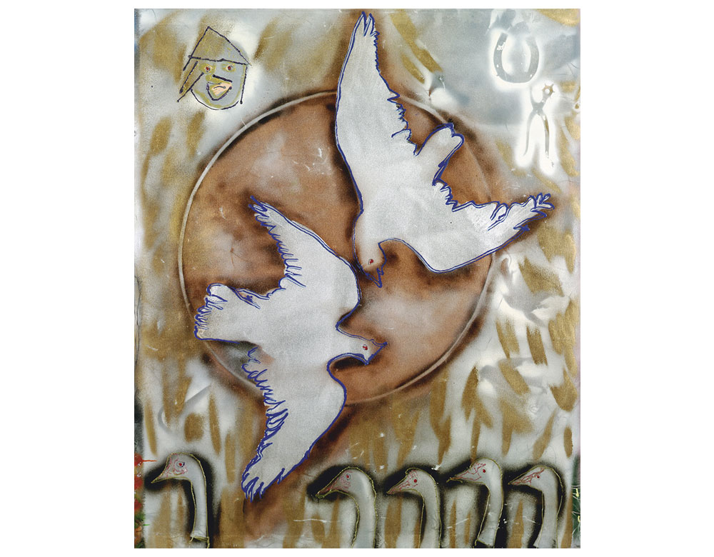 Panel 29 of L’Hommage à Rosa Luxemburg, 1992, acrylic and spray paint on canvas. Triptych, 1.55 m in height x 40.39 m in length.
