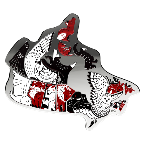 We all view the world in our own unique way. And sometimes, we’re inspired to see things in a new light, which gives shape to new ideas—like the first ever Canada-shaped coin! This proudly patriotic piece is our latest innovation. Inspired by Canada’s geography, the coin’s contour wraps around the edges of the colour-over-engraved map of Canada, which is every bit as extraordinary as its 99.99% pure silver canvas. Much like our provinces and territories, Canada’s animal icons come in different sizes and shapes. And they are theones who give shape to our map of Canada. These bird and mammal mascots are uniquely suited to their respective homes, and they reflect who we are as a people—whether it’s Nunavut’s Canadian Inuit dog or Ontario’s common loon.