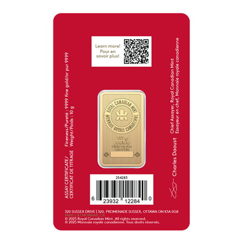 Price is subject to change without notice. Represents minimum guaranteed weight. The Royal Canadian Mint reserves the right to refuse or limit orders, and to change its prices and product offerings without notice if, for any reason, it should be found necessary to do so. The Mint also reserves the right to impose purchase quantity limits on certain items. Once an order is placed, it cannot be cancelled. Premium Bullion Products in special packaging are final sale (they cannot be returned or exchanged and are not eligible for refund for any reason). Exceptionally, in the event of a damaged, defective or incorrect product purchased through the Mint online (whether by mobile app or on mint.ca) or via the call centre, you may contact the Mint’s Customer Service Solutions Centre within 14 calendar days after shipment to request an exchange for the same product originally purchased (subject to product availability), where the Mint will, at its discretion, evaluate exchange requests on a case-by-case basis.