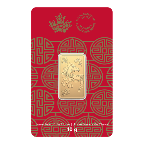 Why is this called Premium Bullion? Your Premium Bullion bar comes presented in custom designed, Lunar Year of the Horse themed packaging. Each 10 g Lunar Year of the Horse bar comes hermetically sealed in custom tamper-evident packaging that highlights the traditional gold and red of the holiday, thus providing a stunning presentation and an extra layer of security to protect your investment.