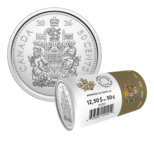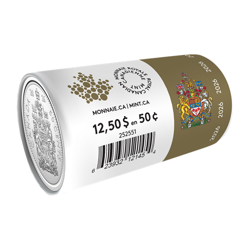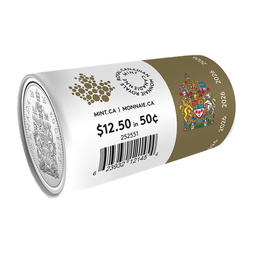 Canada’s 50-cent coin rarely pops up in your pocket change, but with a Special Wrap Roll, your collection can be instantly updated to include the 2026 edition. This is the only way to get 2026-dated 50-cent circulation coins outside of a set: each Special Wrap Roll consists of 25 uncirculated 50-cent coins wrapped in an illustrated paper that complements the heraldic design elegantly etched onto each coin’s reverse.