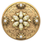 - Set in 18k gold, surrounded by more gold and diamonds. The yellow diamonds are set in 18-karat gold mounts. Five round-cut diamonds add additional sparkle to the coin’s engraved reverse.