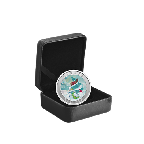 This lenticular holiday keepsake invites you to join Churchill the polar bear and friends for some thrills, near-spills, and endless fun! Once you feel the rush of sledding or tobogganing, you’ll want to do it again and again, and not even hot chocolate can lure our animal friends away from the carefree sliding session depicted here. When you tilt the coin, these playful creatures slide – it’s a heartwarming moment and a light-hearted scene that celebrates the joy and magic of a Canadian winter.