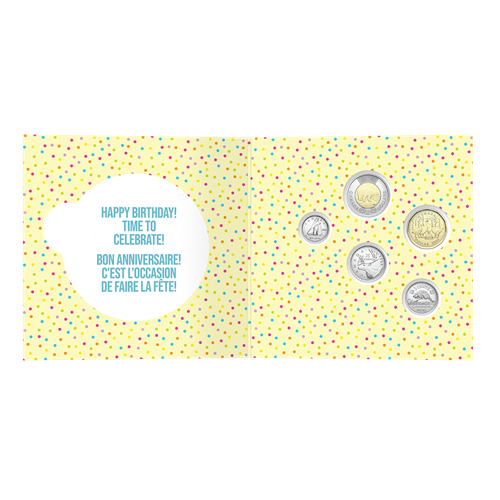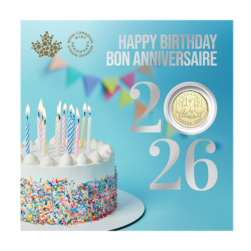 Instead of the classic Loonie, the $1 coin in this set features a cute Canada goose design that says “Happy Birthday” in a uniquely Canadian way. The coin is only available as part of the 2026 Birthday Gift Card Set—it is not available on its own.