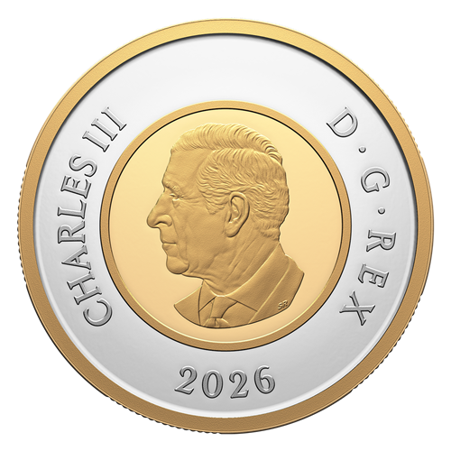 Commemorating the centenary of The Royal Canadian Legion, the Proof Dollar in this set is enhanced with selective rose gold plating. The reverse design by Canadian artist Steve Hepburn presents two Legion members standing in Remembrance, set against the maple leaf from the Legion’s official crest. In the background, the fabric pattern symbolizes the Legion’s role as a national community service organization, woven into the social fabric of Canada. Arching the bottom, the floral arrangement consists of 14 poppies—one for each Canadian province and territory, and another for the Legion’s international branches. On the right side or east of the floral arrangement, a forget-me-not flower, a symbol of Remembrance in Newfoundland and Labrador. Beneath this, three poppies from the Legion’s official crest, adorn the scroll banner marked with the anniversary dates “1926” and “2026”. The obverse features the effigy of His Majesty King Charles III by Canadian artist Steven Rosati.